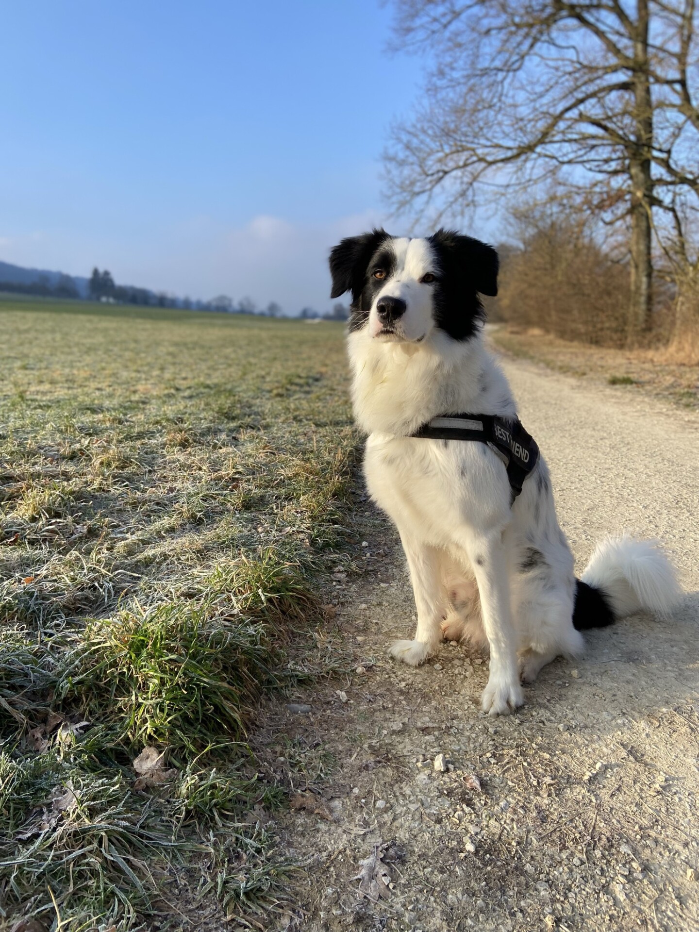 Im Kontakt mit Artgenossen reagiert sie auf Spaziergängen gelegentlich noch etwas stürmisch, deshalb darf sie aktuell mit Anleitung in einer Hunde-Gruppe lernen.